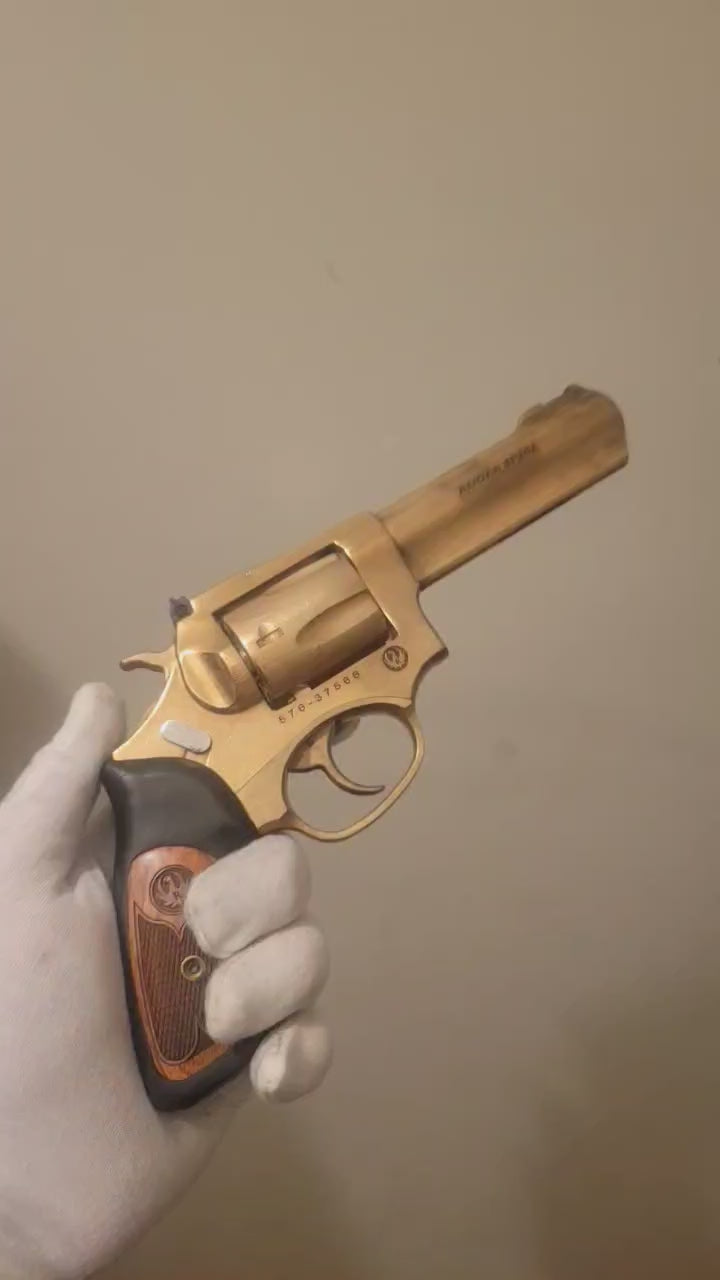 The 24K Gold-Plated Ruger SP101 .357 Magnum Revolver is a masterpiece of craftsmanship and luxury. This exquisite revolver is not just a firearm; it's a statement piece that combines power, precision, and elegance. Designed with the discerning gun enthusiast in mind, this revolver stands out due to its stunning 24K gold plating and robust engineering. Whether you are a collector or an avid shooter, this piece is a must-have.